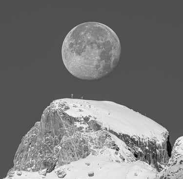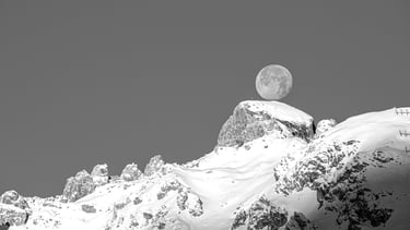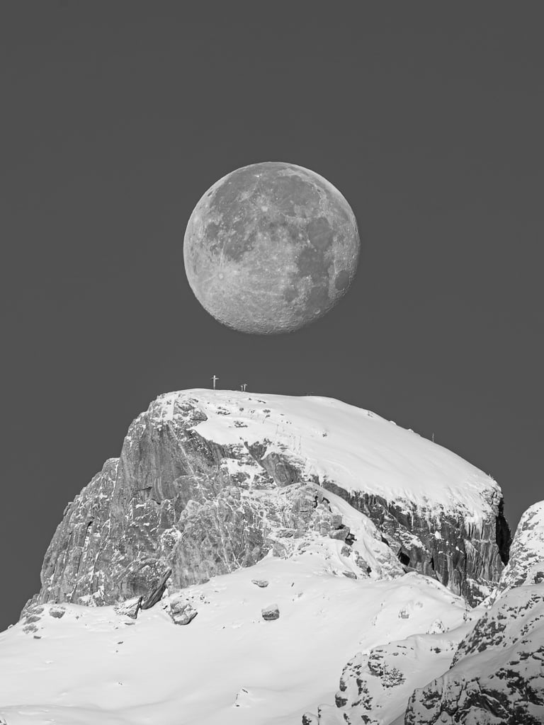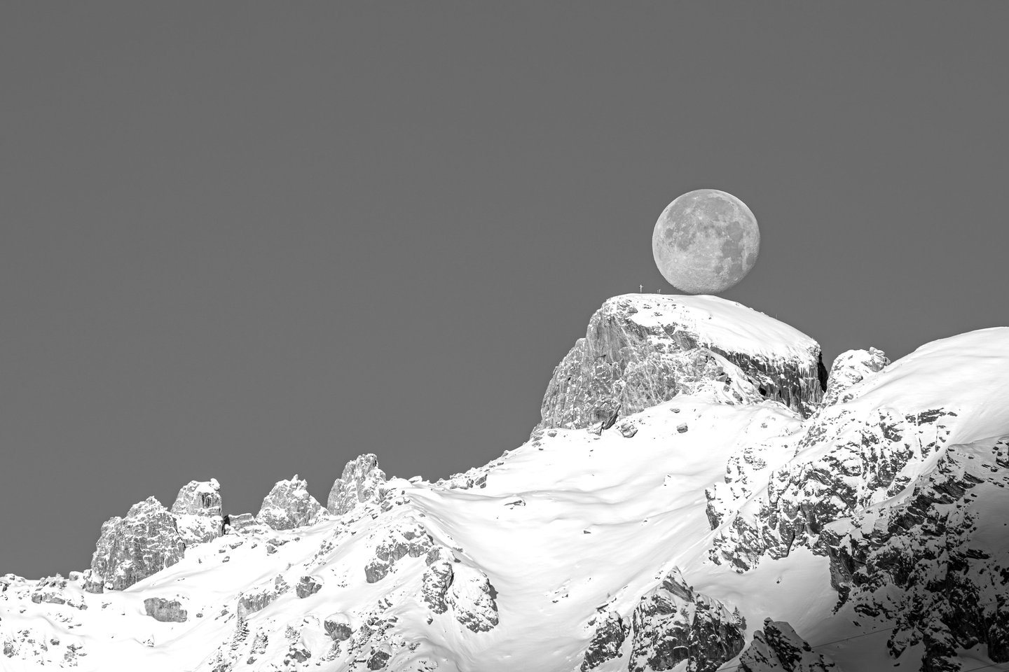 Moonset over Pierre-Avoi, Verbier, Switzerland. Decmber 2023